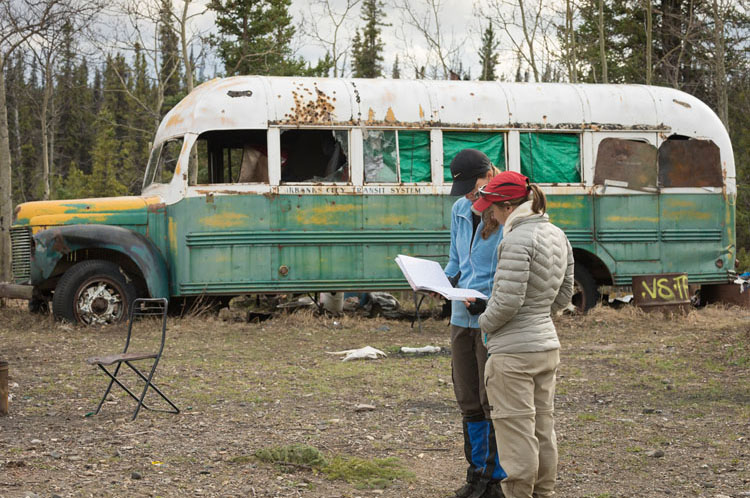 May 2014 - With my book editor and dear friend, the very talented Jenna Land Free. Looking through years of entries written by other visitors in a journal that I had left behind during my first visit to the bus with Jon Krakauer in August 2007.